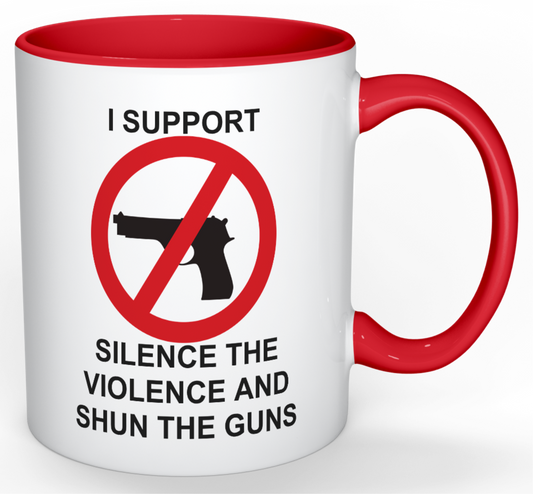 THE SILENCE THE VIOLENCE AND SHUN THE GUNS COFFEE MUG