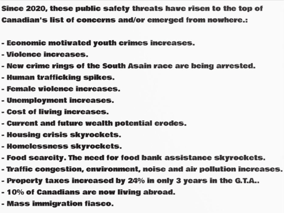 The restore our country grassroots collective movement was launched to reverse the downward spiral of our country since 2020. The top two concerns for Canadians are the economy and crime. The senseless excuses, not taking these growing matters seriously, the decision not to do enough collectively or doing nothing at all 5 years ago, has aimlessly streered our country on to an unprecedented course for self destruction. This unprecedented growing public threat that has emerged, that has begun attacking the future of patriotic Canadians, and it can only be thwarted by first restoring our safety. Our rallying call is "No safety, no economy. No economy, no future.". If we want to reverse the direction of the economy, we must restore our safety first. Historically, no society has ever prospered without first establishing a stable, safe and healthy environment. We are in an economic crisis, which will be followed by panic and then chaos. If we want to restore Canada, we must restore our safety first. It's well overdue to take grassroots collective action to protect our threatened future.